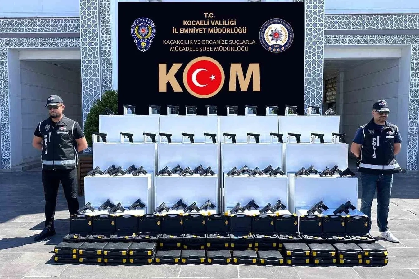 Kocaeli TEM Otoyolu'nda silah taşıdığı belirlenen bir araca düzenlenen nefes kesen operasyonda 60 tabanca ve binlerce dolar ele geçirildi.