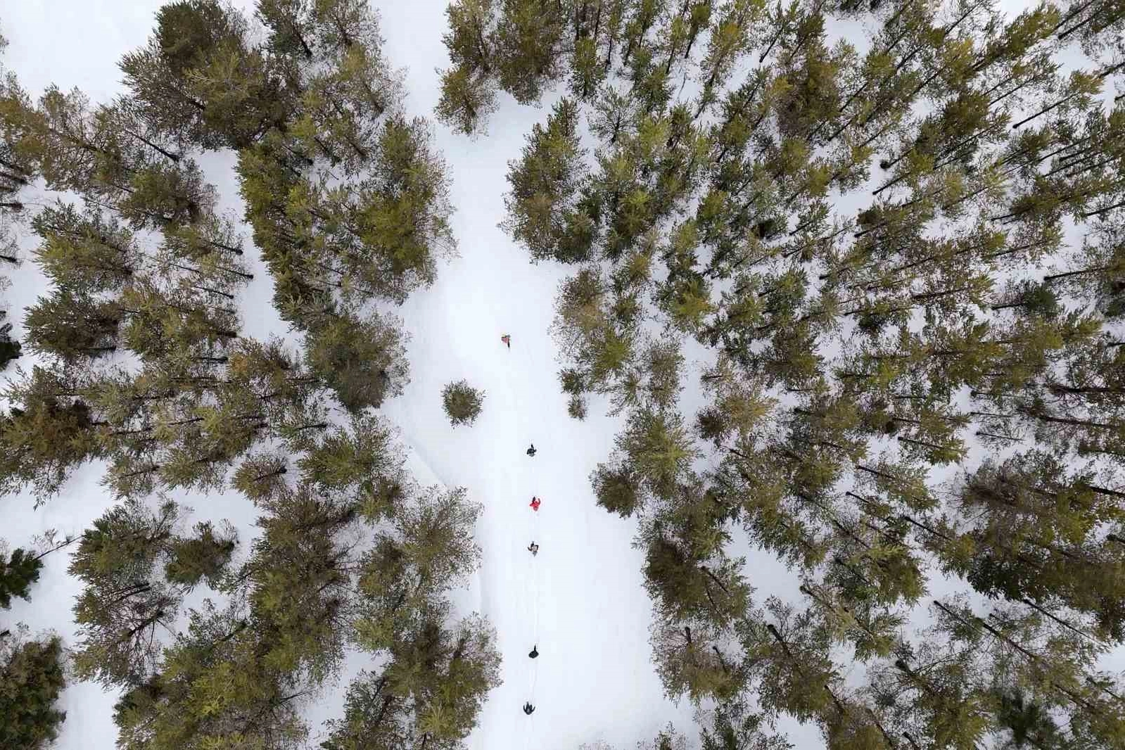 Şehrin gürültüsünden uzak, beyaz örtüyle kaplı ormanların arasından geçen ekip, hem spor yaptı hem de kışın en sert yüzünü deneyimledi.