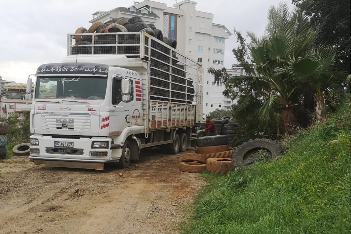 Büyükşehir Belediyesi Çevre Koruma ve Kontrol Dairesi Başkanlığı’na bağlı ekipler, Alanya’nın 102 mahallesinde düzensiz şekilde bırakılan lastikleri topluyor. 2025 yılında 5 tır atık lastik geri dönüşüme gönderilirken, son 6 yılda toplam 30 tır lastik doğadan temizlendi.