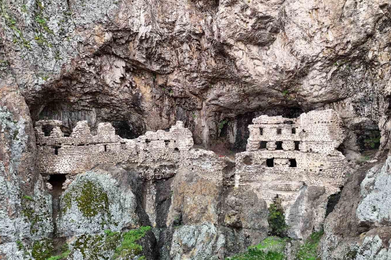 Kızılcahamam'da sarp kayalıklara kurulu, Sümela'ya benzerliğiyle dikkat çeken tarihi Alicin Manastırı turizme kazandırılmayı bekliyor.