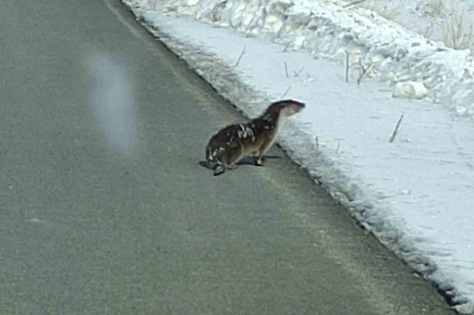 Ardahan-Kars kara yolu Hoçuvan Hasköy köyü mevkiinde görülen su samuru, yol kenarında bir süre ilerledi. Yoldan geçen araçlara aldırış etmeden hareket eden hayvanın, yakınlardaki bir akarsudan geldiği değerlendiriliyor. Çevresini dikkatle inceleyen su samuru, kısa süre sonra karla kaplı araziye yönelerek gözden kayboldu.