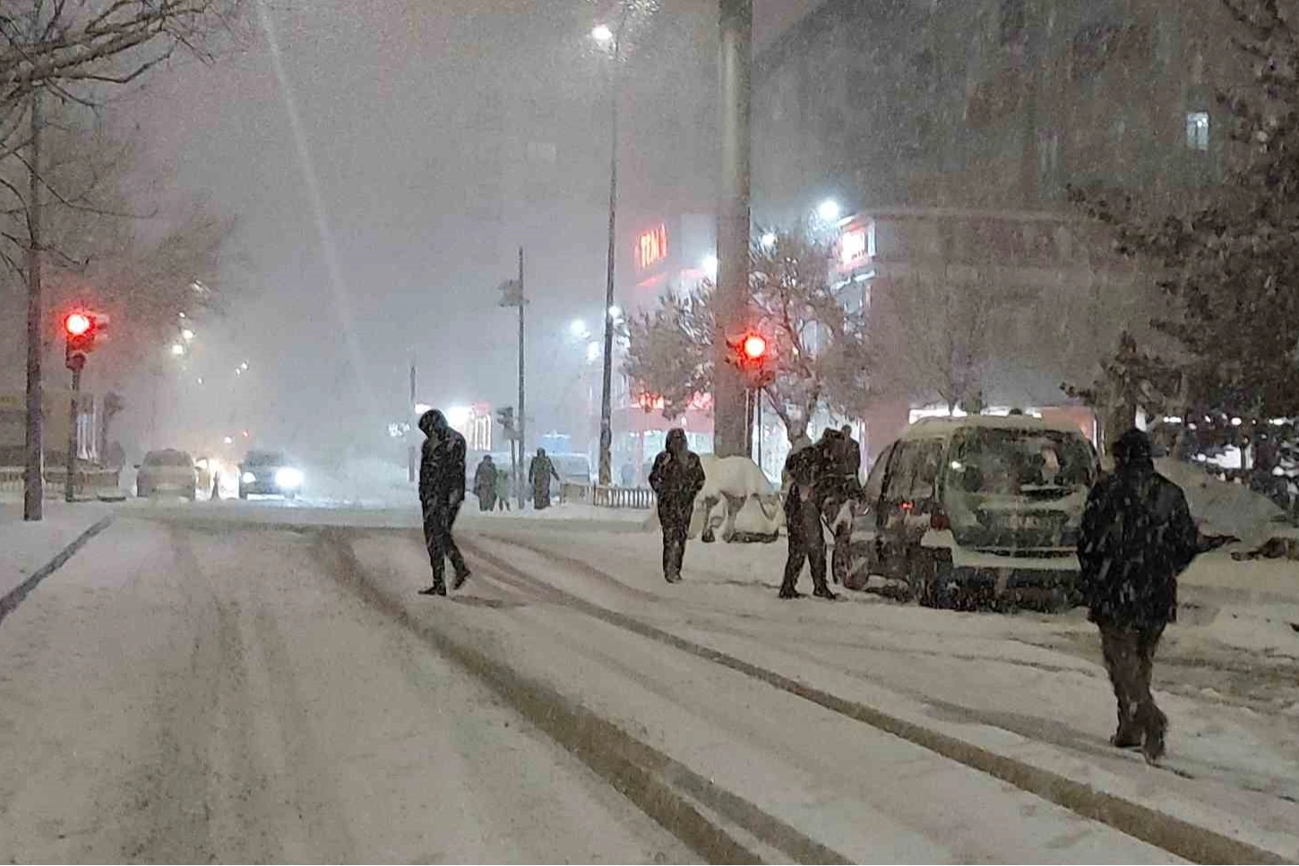 Van’da meteorolojinin uyarılarının ardından başlayan kar yağışı, kısa sürede etkisini artırdı. Özellikle kent merkezinde cadde ve sokaklar beyaz örtüyle kaplanırken, yüksek kesimlerde karla birlikte tipi de etkili oldu. İftar sonrası dışarı çıkan vatandaşlar, yoğun kar yağışı altında yürüyüş yaparken, trafikte zaman zaman aksamalar yaşandı.