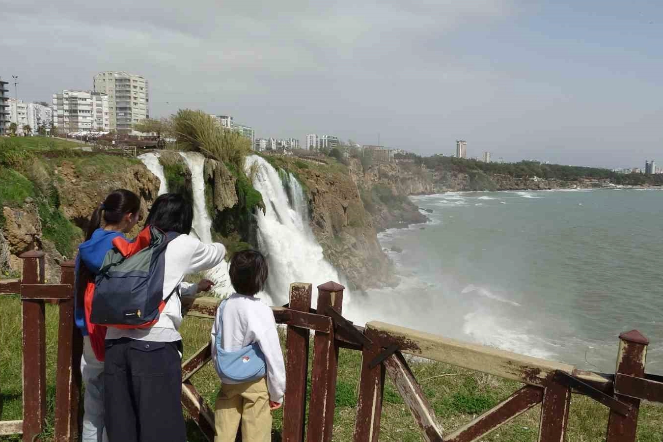 Antalya’da dün akşam saatlerinde etkisini gösteren şiddetli sağanak yağışın, kentin en önemli simgelerinden biri olan Düden Şelalesi’nin debisini ve rengini değiştirdiği bildirildi. Yağmur sularıyla birlikte yüksek kesimlerden taşınan toprak ve sedimentin şelale vasıtasıyla Akdeniz’e boşaldığı, çamurlu suyun denize karışmasıyla birlikte falezler hattı boyunca denizin masmavi renginin bir anda kahverengiye döndüğü aktarıldı.