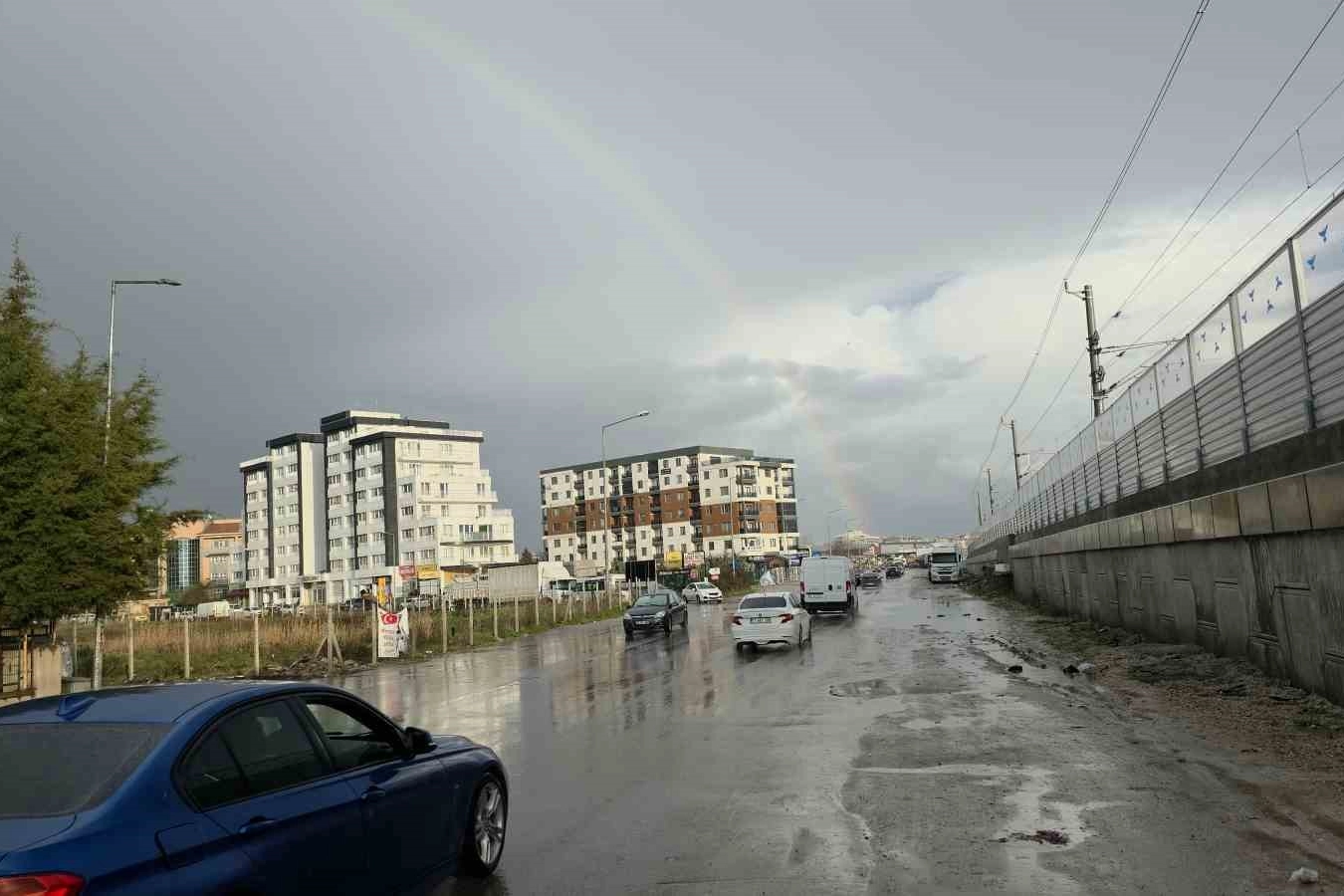 Yağış sonrası kentte oluşan gökkuşağı ise fırtınanın ardından kısa süreli görsel bir şölen sundu.