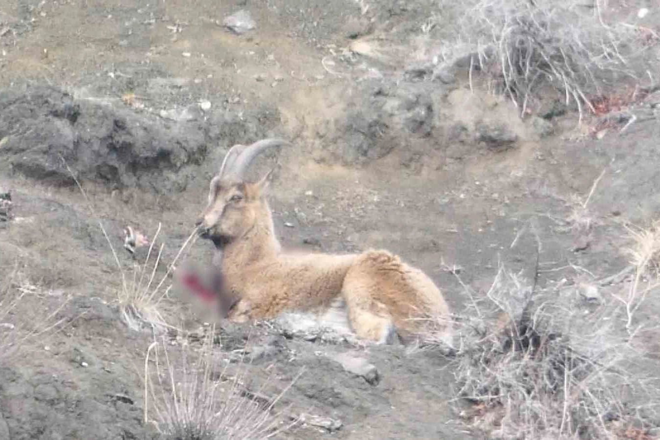 Sarp arazide yaban keçilerinin fotoğraflarını çekmek için yürüyüş yapan Dr. Taşçı, kanlar içindeki hayvanı hareket edemez halde buldu.