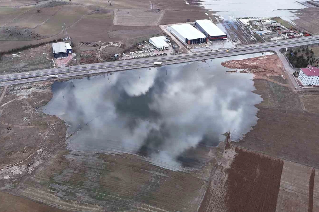 Eriyen kar sularının dolduğu tarlalarda adeta gölleri andıran manzaralar oluştu. Kuraklıkla mücadele eden çiftçiler için yağışlar umut olurken, kontrolsüz su birikintileri bazı üreticiler için yeni bir risk oluşturdu.