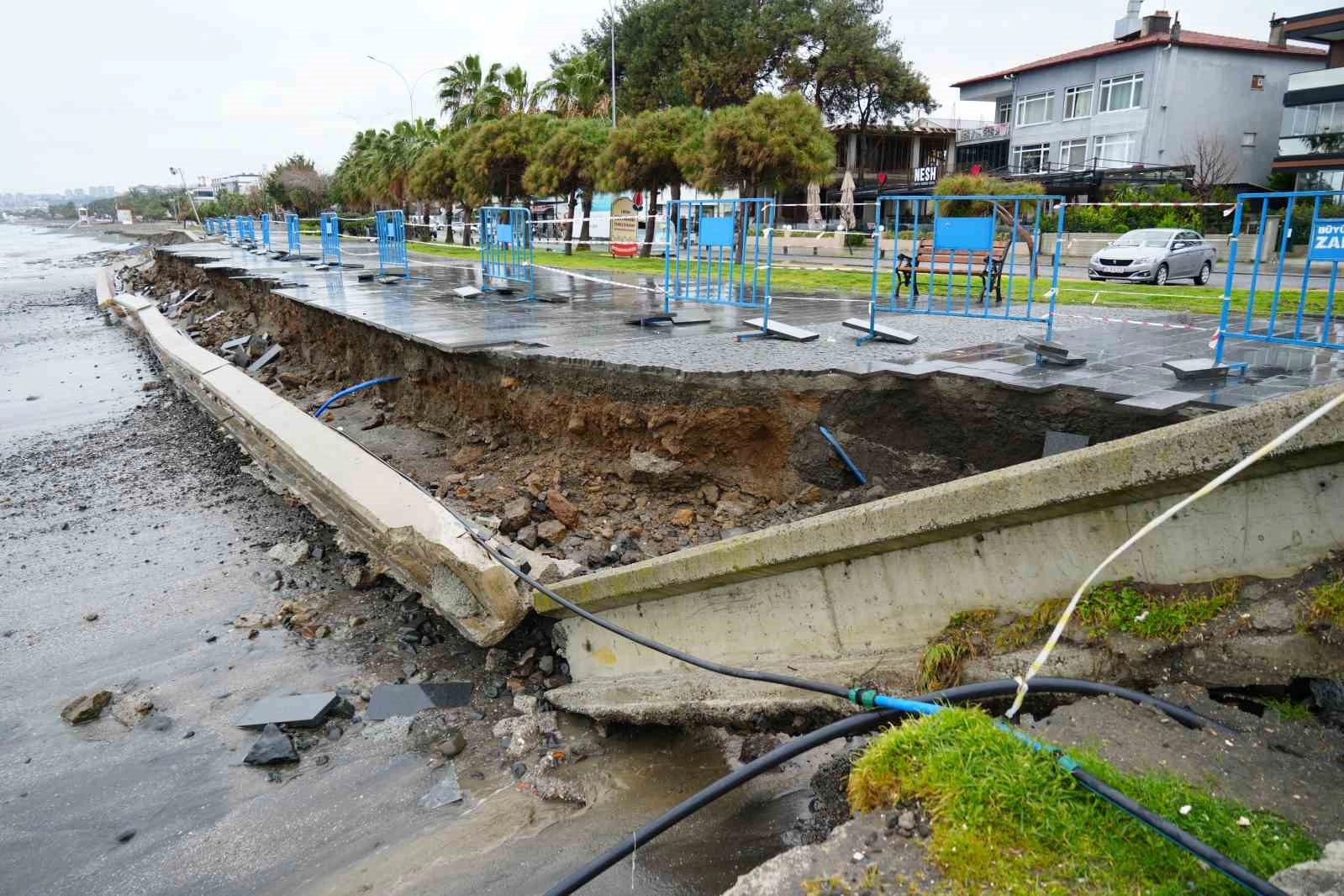 Fırtınanın etkisiyle yükselen dalgalar, sahil boyunca yürüyüş yollarını ve sosyal alanları olumsuz etkiledi. Dalgaların taşıdığı büyük kayalar yürüyüş alanlarına savrulurken bazı noktalarda zemin çökmeleri meydana geldi. Sahil hattında ciddi maddi hasar oluştuğu gözlendi.