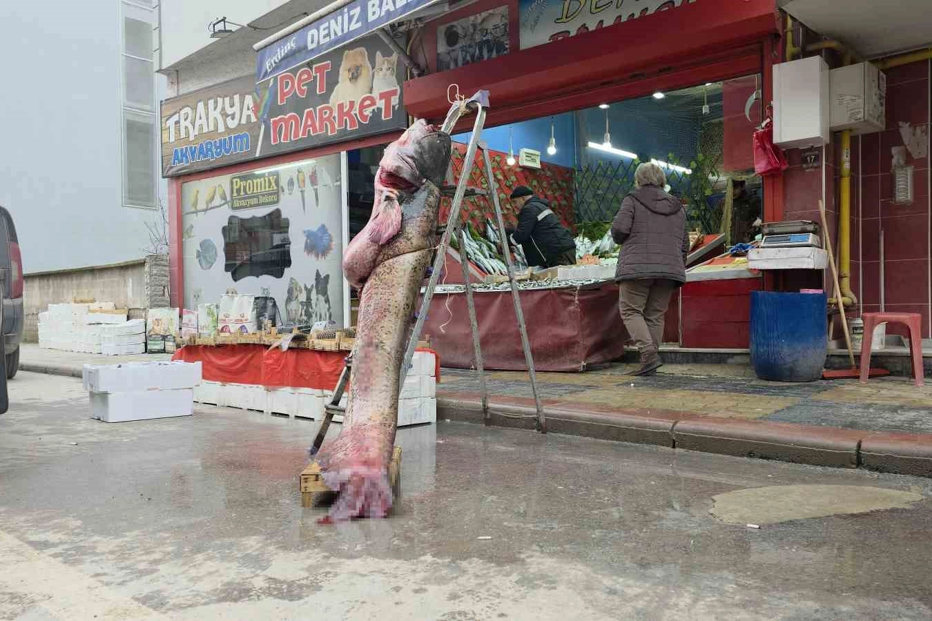 Tezgahta sergilenmeye başlanan ve adeta bir insan boyutunda olan yayın balığı, vatandaşların yoğun ilgisiyle karşılaştı. Fotoğraf çektirmek isteyenler sıraya girerken, balığın ekonomik değeri de dudak uçuklattı.
