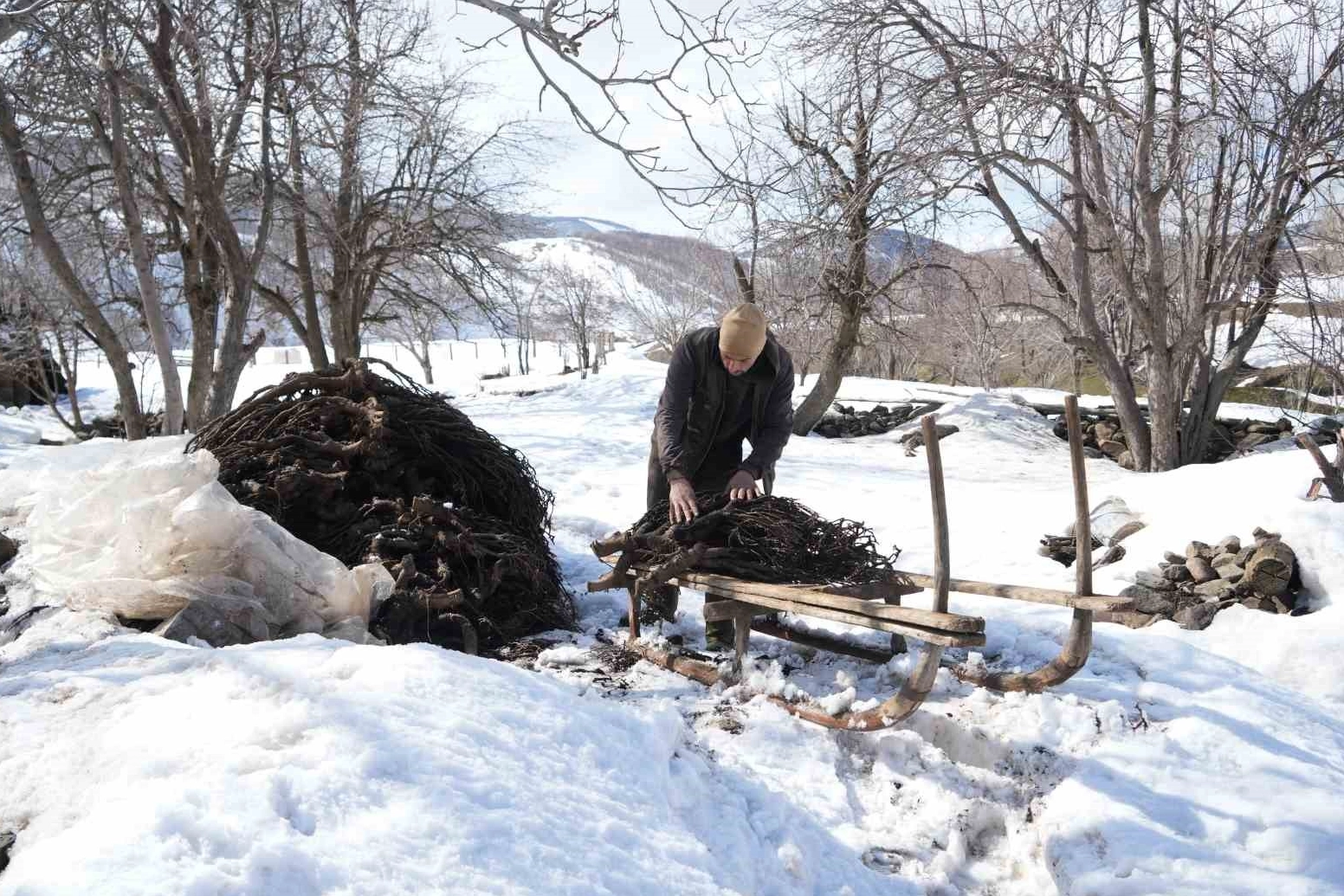 Geven otunun ahırlara ulaşma serüveni büyük bir emek ve sabır gerektiriyor. Sonbaharda dağ yamaçlarında stoklanan gevenler, karın yağmasıyla birlikte kızaklara yüklenerek köye indiriliyor. Bitkinin üzerindeki sert dikenler önce ateşte yakılarak temizleniyor, ardından baltalarla küçük parçalara ayrılarak saman yerine hayvanlara veriliyor. Alaniçi köyünden 56 yaşındaki besici Murat Gürtürk, bu işin hiçbir kolaylığının olmadığını ancak hayvancılığın devamı için hayati önem taşıdığını vurguladı.
