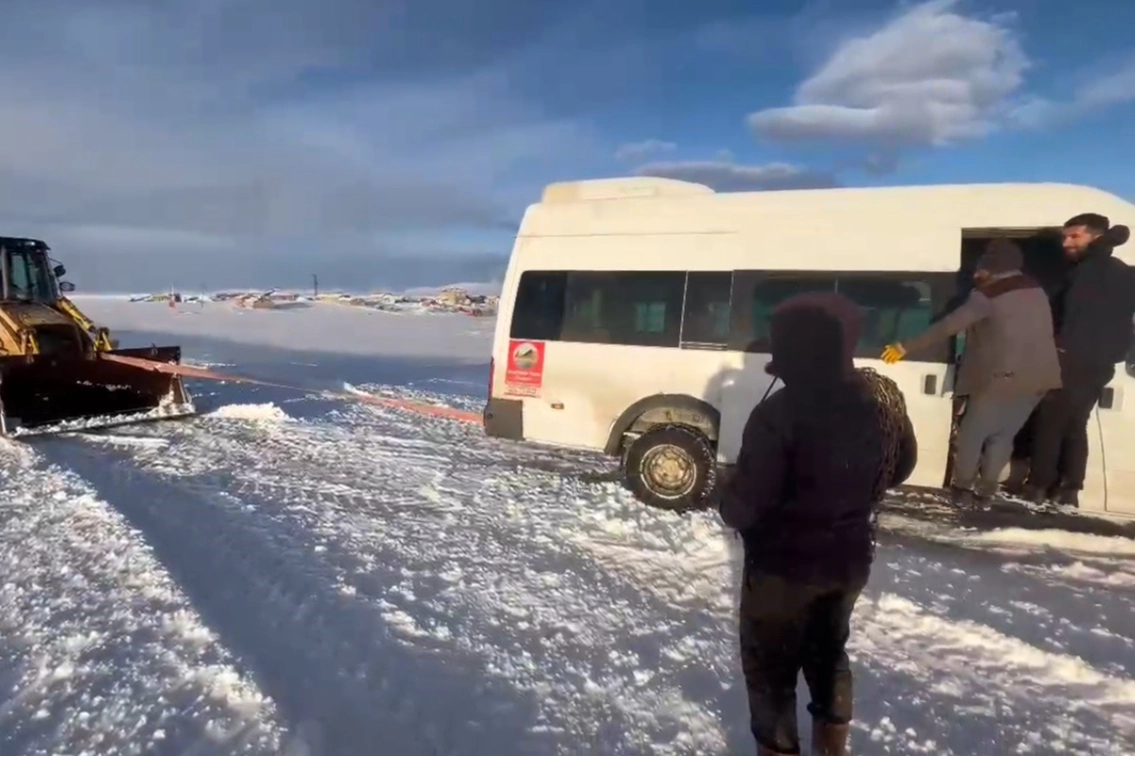 Tipi ve yoğun kar yağışı ekiplerin ilerlemesini güçleştirirken, yol açma ve kurtarma çalışmaları kontrollü şekilde yürütüldü. İş makineleriyle önce yol genişletildi, ardından kara saplanan minibüs bulunduğu yerden çekilerek çıkarıldı.