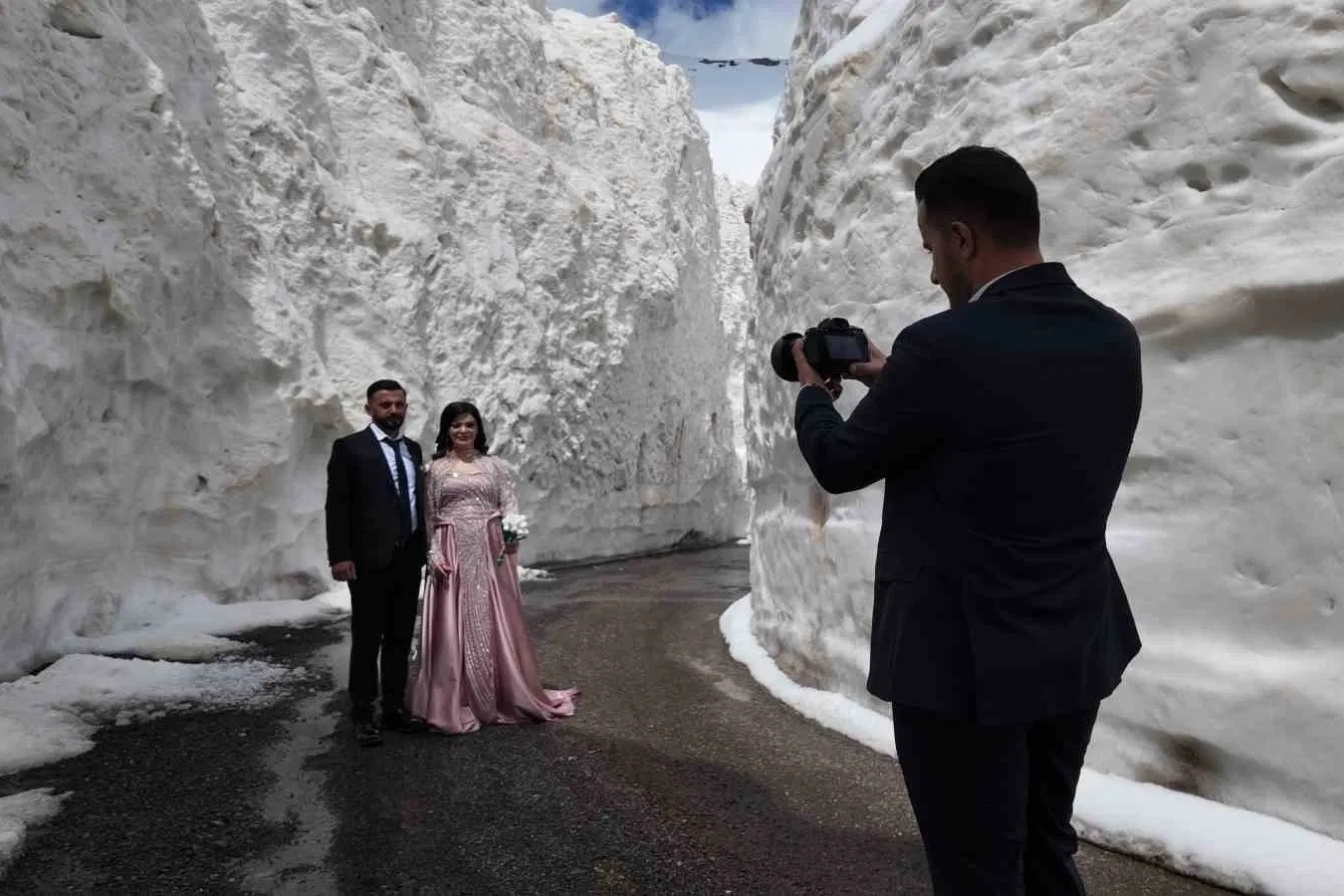 -Damat adayı Eray Yıldız, Türkiye'de ilk defa böyle bir dış çekim yapıldığını söyledi. -Yıldız, "Aylardır bu günü bekliyorduk, kar tünelinde çekim yapmak istedik, değişik ve güzel bir duygu" diyerek heyecanını paylaştı. -Çiftin fotoğraf çektirdiği çığ tünelinde kar kalınlığının 10 metreyi bulduğu öğrenildi.