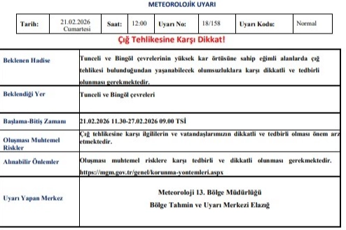 Tunceli ve Bingöl gibi sarp coğrafyaya sahip illerimizde, yüksek kar örtüsü maalesef her yıl benzer riskleri beraberinde getiriyor. Meteoroloji’nin bu "erken uyarısı", can kayıplarının önüne geçmek adına çok kıymetlidir. Özellikle bu bölgelerde yaşayan hemşehrilerimizin, "bir şey olmaz" demeden, eğimli yamaçlardan ve riskli bölgelerden uzak durmalarını rica ediyoruz. Doğanın gücü karşısında en iyi önlem, zamanında alınan tedbirdir.