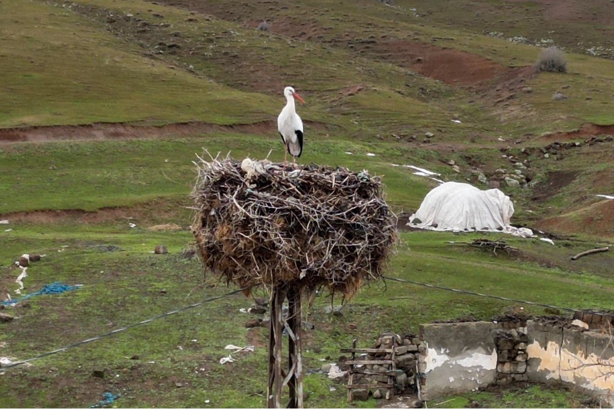 Güroymak’a bağlı Budaklı köyünde bulunan bir leylek, yıllardır göç etmeyerek aynı yuvada kalmaya devam ediyor. Normalde sonbahar aylarında Afrika başta olmak üzere daha sıcak bölgelere göç eden leyleklerin aksine, bu leyleğin kış aylarını da köyde geçirmesi dikkat çekiyor.