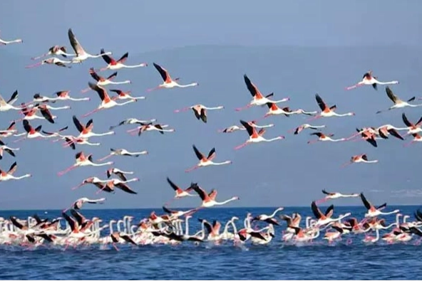 Kış mevsimi olmasına rağmen göl tabanında oluşan yeni adacıklar net şekilde ortaya çıktı. Su kaybı nedeniyle flamingoların da konaklama alanlarını değiştirdiği gözlendi.