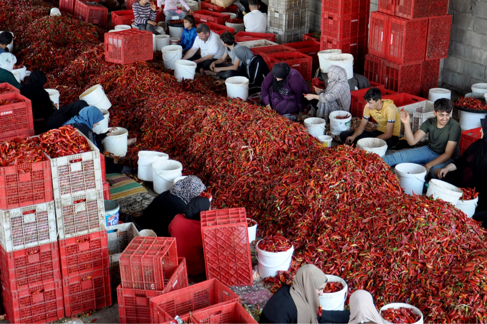 Yaz sezonunda yaklaşık 8 bin kişinin istihdam edildiği üretim sürecinde, tarlalarda toplanan biberler temizlenip kurutulduktan sonra ilçedeki 29 tesiste hijyenik koşullarda işleniyor. Yıllık 100 bin ton pul ve toz biber üretildiği belirtilirken, bunun 70 bin tonunun iç piyasada tüketildiği, 30 bin tonunun ise başta Almanya, İngiltere ve Hollanda olmak üzere Avrupa ve Orta Asya ülkelerine ihraç edildiği kaydedildi.