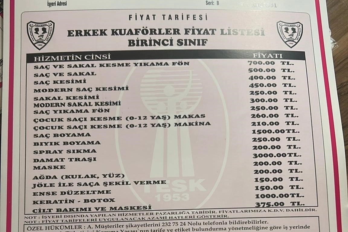 Yeni listenin en çok konuşulan maddesi ise şüphesiz "Damat Tıraşı" oldu. Düğün sezonu yaklaşırken evlilik hazırlığı yapan çiftleri üzecek haber geldi: Kayseri’de damat tıraşının bedeli tam 3.000 TL olarak belirlendi.