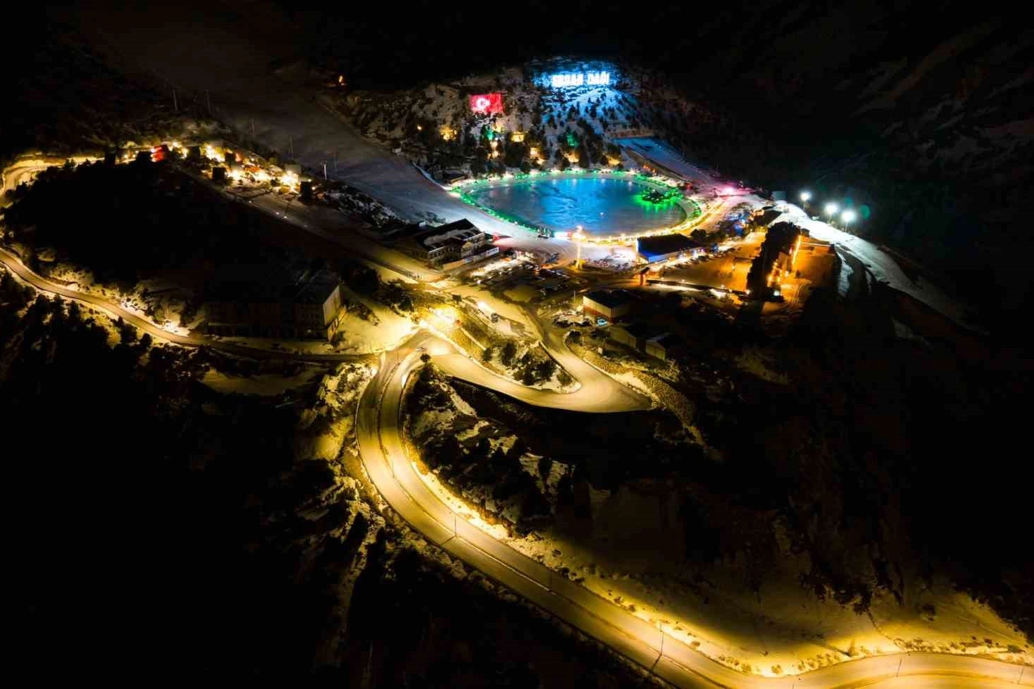 Türkiye’nin kış turizminde parlayan yıldızı Erzincan Ergan Dağı Kayak Merkezi, on bir ayın sultanı Ramazan’ı her zamankinden daha farklı ve zarif bir atmosferle karşılıyor. Dağın eşsiz beyazlığı, Ramazan ayının manevi ruhuyla birleşerek ziyaretçilerine unutulmaz bir manzara sunuyor. Erzincan Valiliği koordinesinde yürütülen çalışmalar kapsamında, merkez binası ve çevre alanlar dekoratif ışıklandırma sistemleriyle donatıldı. Kayak tutkunlarını karşılayan bu görsel şölen, kış sporlarının heyecanına Ramazan’ın huzurunu ekliyor.