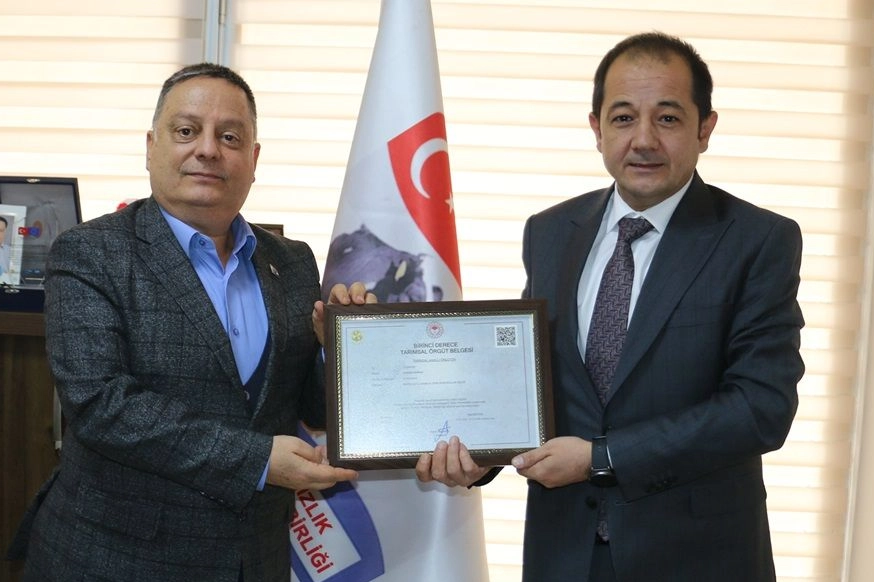 Erzincan Tarım ve Orman İl Müdürü Alper Koçaker, 1. Sınıf Tarımsal Amaçlı Örgüt Belgesi’ni Erzincan Damızlık Sığır Yetiştiricileri Birliği Başkanı Yaşar Faruk Günay’a teslim etti. Törende konuşan İl Müdürü Koçaker, Erzincan DSYB’nin yürüttüğü çalışmaların ve hayata geçirdiği projelerin herkes tarafından takdir edildiğini belirterek, bunun Erzincan adına gurur verici bir gelişme olduğunu ifade etti.