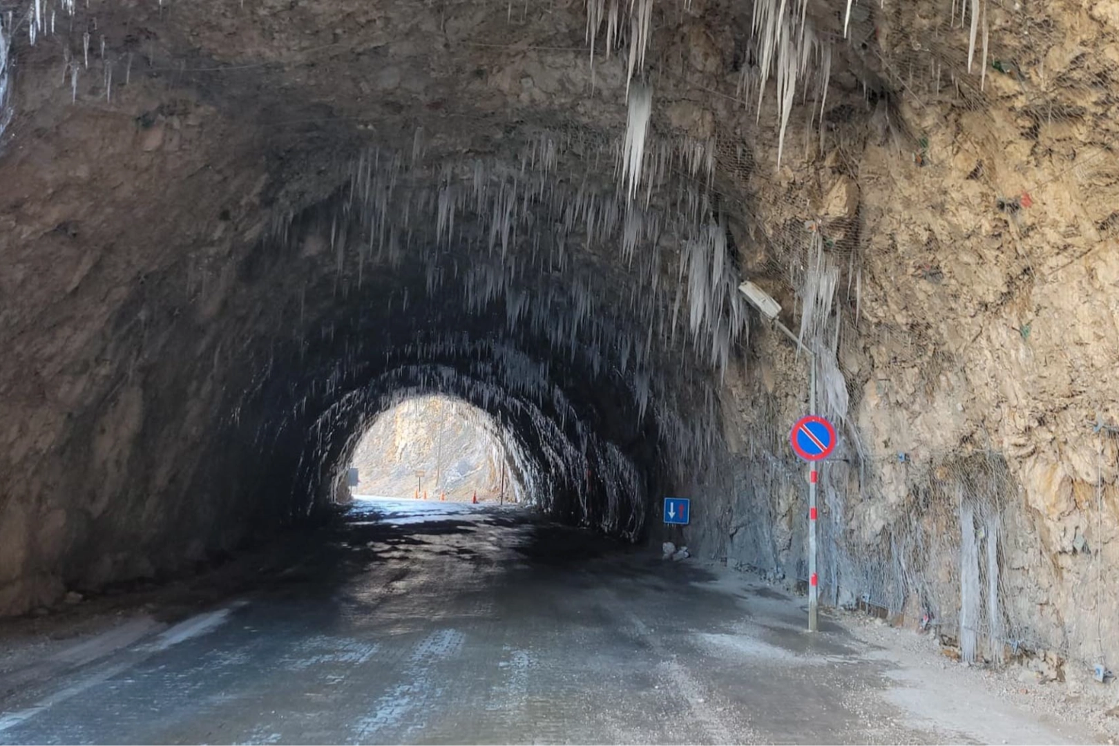 Erzincan’ın Kemaliye ilçesini İç Anadolu’ya bağlamak için 1870’lerde inşasına başlanan ve "dünyanın en zorlu yolları" arasında gösterilen 7 kilometrelik Taş Yol, aşırı soğuklardan nasibini aldı. Fırat Nehri kıyısında uzanan ve irili ufaklı tünellerden oluşan bu tarihi yolda, tavanlardan sarkan sular donarak dev buz kütlelerine dönüştü. Ulaşımı tehlikeye sokan sarkıtlar, Kemaliye Belediyesi ekipleri tarafından güçlükle kırıldı.