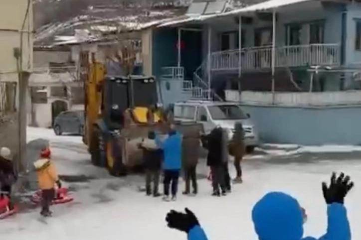 Kızakla kaymak için kullandıkları alanın temizlenmesini istemeyen çocuklar, iş makinesini durdurarak operatörle konuştu. Küçük yaşlarına rağmen kararlılıklarıyla dikkat çeken çocuklar, “Burası bizim kızak pistimiz” diyerek alanın olduğu gibi bırakılmasını rica etti. Operatörle çocuklar arasında geçen bu samimi diyalog, çevrede bulunan vatandaşlar tarafından cep telefonu kamerasıyla kaydedildi.