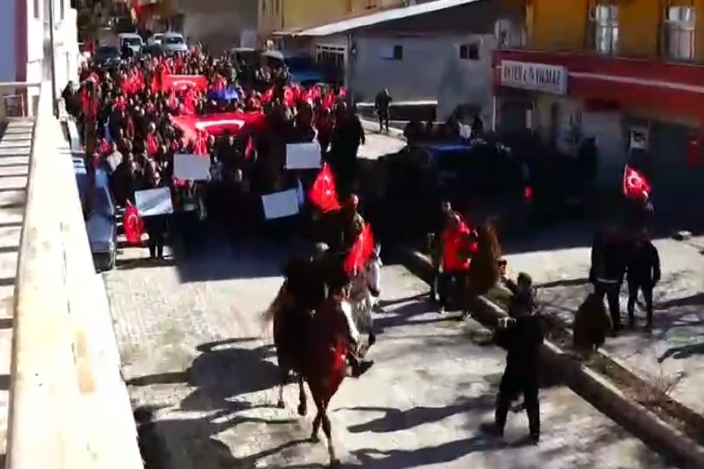 Açıklamanın ardından Tercan’da bir araya gelen vatandaşlar, ellerinde Türk bayraklarıyla yürüyüş gerçekleştirdi.