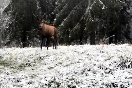 Bolu'da karla kaplı ormanda doğa gezisi yapan bir vatandaş tarafından kızılgeyik görüntülendi.Yüzde 65'i ormanlarla kaplı Bolu'da doğa gezisine çıkan Sefa Eskioğlu, karlar içinde ilerleyen bir kızılgeyiği fark etti. Eskioğlu, o anları cep telefonuyla kaydetti. Karla kaplı ağaçların arasında dolaşan kızılgeyik, daha sonra gözden kayboldu.