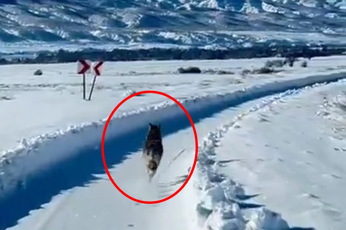 Hastaya bir an önce ulaşmak için beyaz örtüyle kaplı arazide ilerleyen sağlık ekipleri, yolculuk sırasında sürpriz bir misafirle karşılaştı. Aracın farlarının aydınlattığı yolda, bir anda beliren kurt, paletli ambulansın önünde koşmaya başladı. Aracın motor sesine ve ışığına rağmen bir süre yoldan çekilmeyen kurt, adeta ambulansa rehberlik edercesine metrelerce önden koştu.