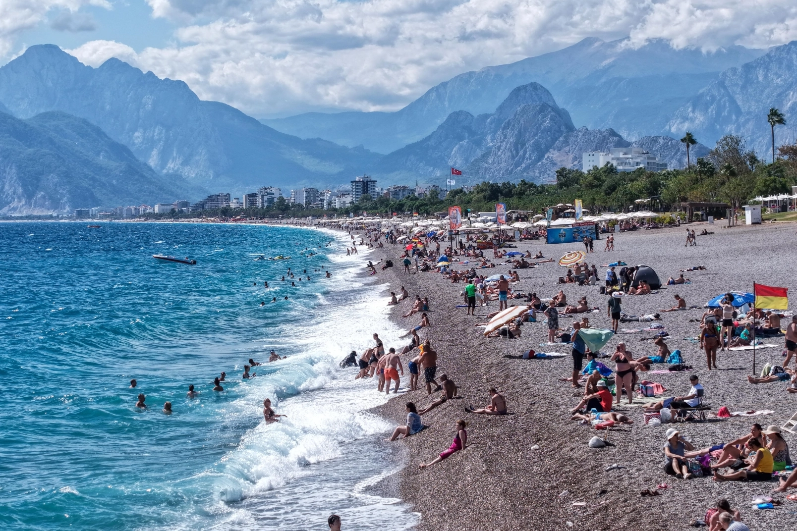 Sıcak havayı fırsat bilenler, denize girmek için Konyaaltı Sahili'ne geldi. Bazıları dalgalı denizde yüzerken, kimileri ise güneşlenmeyi tercih etti. Denize girenlerden bazıları dalgalar nedeniyle zor anlar yaşarken, bazıları sahilde bulunan kayalıktan suya atladı. Meteoroloji Genel Müdürlüğü'nün verilerine göre; kentte gelecek hafta yağış bekleniyor.
