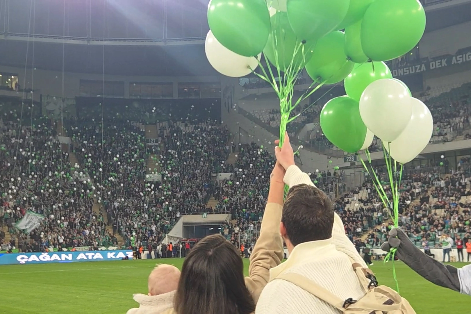 Bursa’da yaşayan Aleyna ve Ahmet Miraç Taran çiftinin, 18 günlükken SMA Tip-1 teşhisi konulan Çağan Ata’nın valilik onaylı kampanyasında mutlu sona ulaşıldı. Çağan Ata’nın bu mutlu gününde Bursaspor-Menemen FK maçı öncesi 40 bin taraftar önünde 20 bin balon bırakılarak kutlandı.