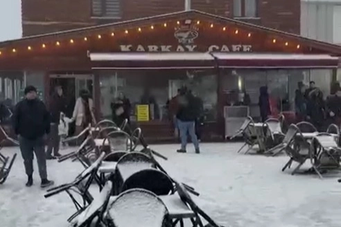 Tatilcilerin ‘beyaz cennet’ olarak tanımladığı Uludağ'da dün sabah saatlerinde etkili olan yağmur, öğleden sonra yerini kara bıraktı. Gece boyunca aralıklarla süren kar yağışı sabah yerini yağmura bırakırken, öğle saatlerinden itibaren yeniden etkisini göstermeye başladı. Hava sıcaklığının en düşük sıfırın altında 1, en yüksek 1 derece olarak ölçüldüğü bölgede yağış aralıklarla devam ediyor. Yerler beyaz örtüyle kaplanırken, kar yağışının tadını çıkarmak isteyenler de 1’inci Oteller Bölgesi’ne akın etti.