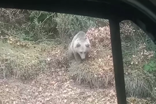 Merkeze bağlı Kuzörenemirler köyü yakınlarında araçlarıyla seyir halinde olan bir aile, yol kenarında bir bozayıyla karşılaştı. Aracı durduran aile, ayıya yiyecek vermek istedi. Aile fertlerinin ayıya yaklaşmaya çalıştığı ve heyecan yaşadığı anlar, cep telefonuyla görüntülendi. Görüntülerde; araçtaki kadının, ayıyı 'Gel koca oğlan gel' diye çağırdığı anlar yer aldı. (DHA)