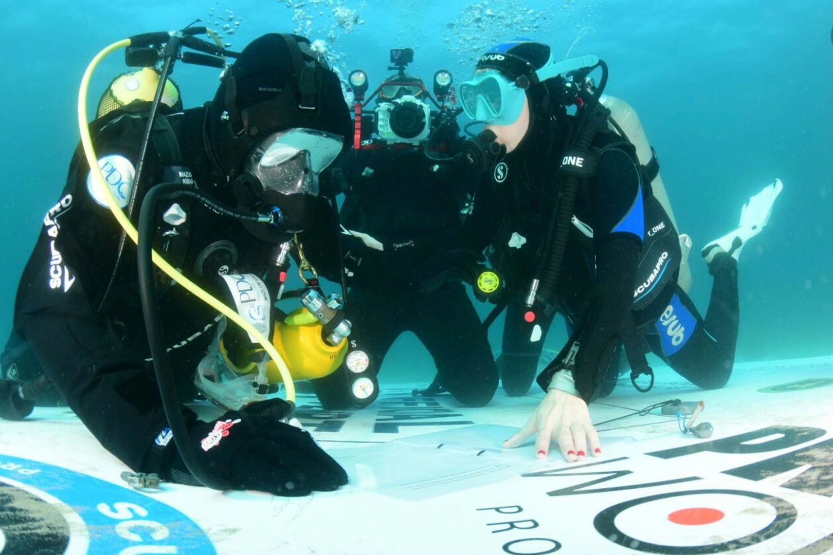 Kıyıdaki teknik ekiple tüm iletişim, su zeminine indirilen özel bir yazı tahtası üzerinden sağlandı.
