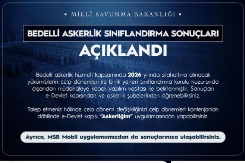 Askerlik görevini bedelli olarak ifa edecek olan yükümlüler için bekleyiş sona erdi. Milli Savunma Bakanlığı, sosyal medya hesaplarından yaptığı "Bedelli Askerlik Sınıflandırma Sonuçları Açıklandı" paylaşımıyla sürecin netleştiğini duyurdu.
