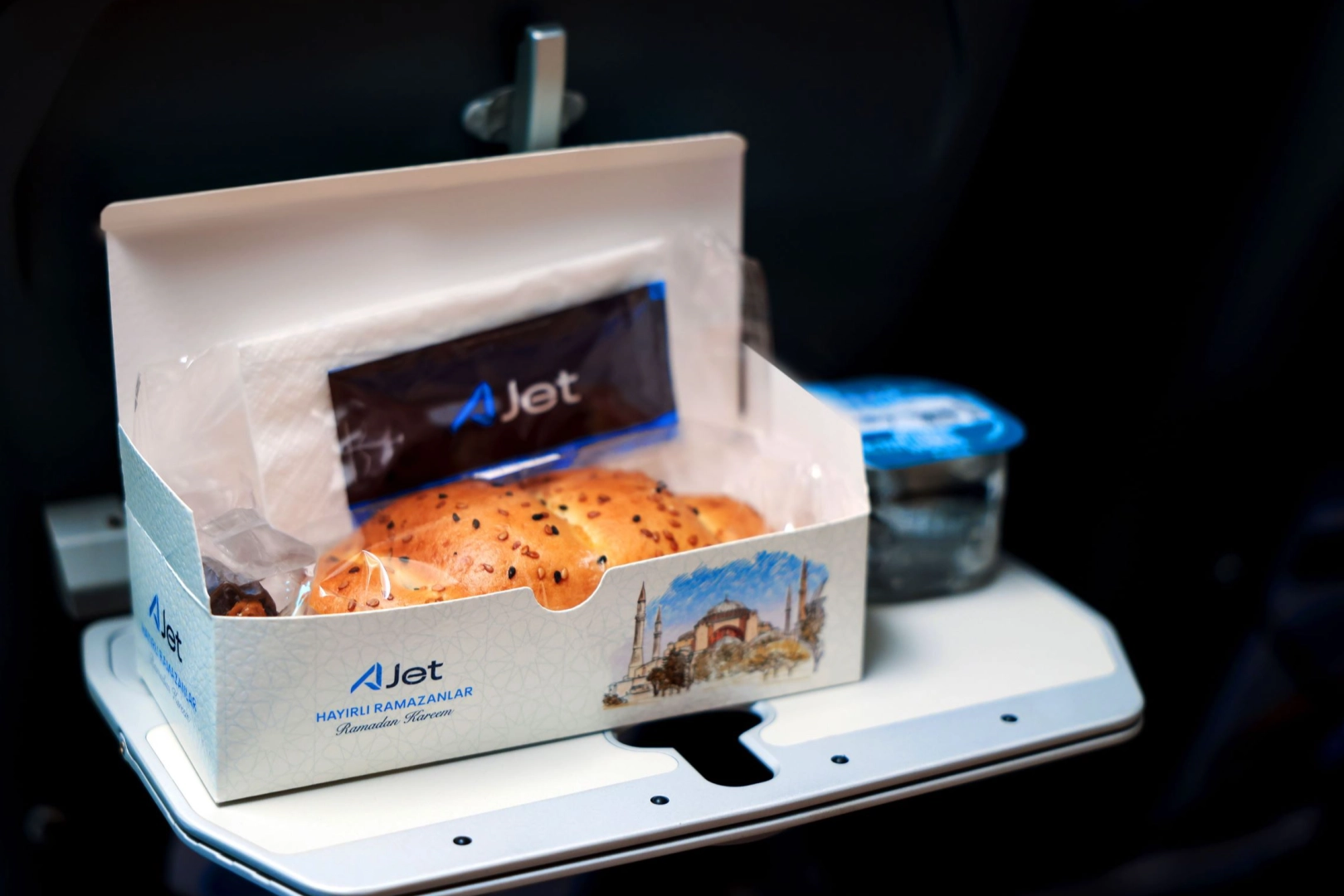 Bu özel setler, uçağın kalkış ve varış saatine göre iftar veya sahur vaktine en yakın dilimde kabin ekipleri tarafından koltuklara servis edilecek.