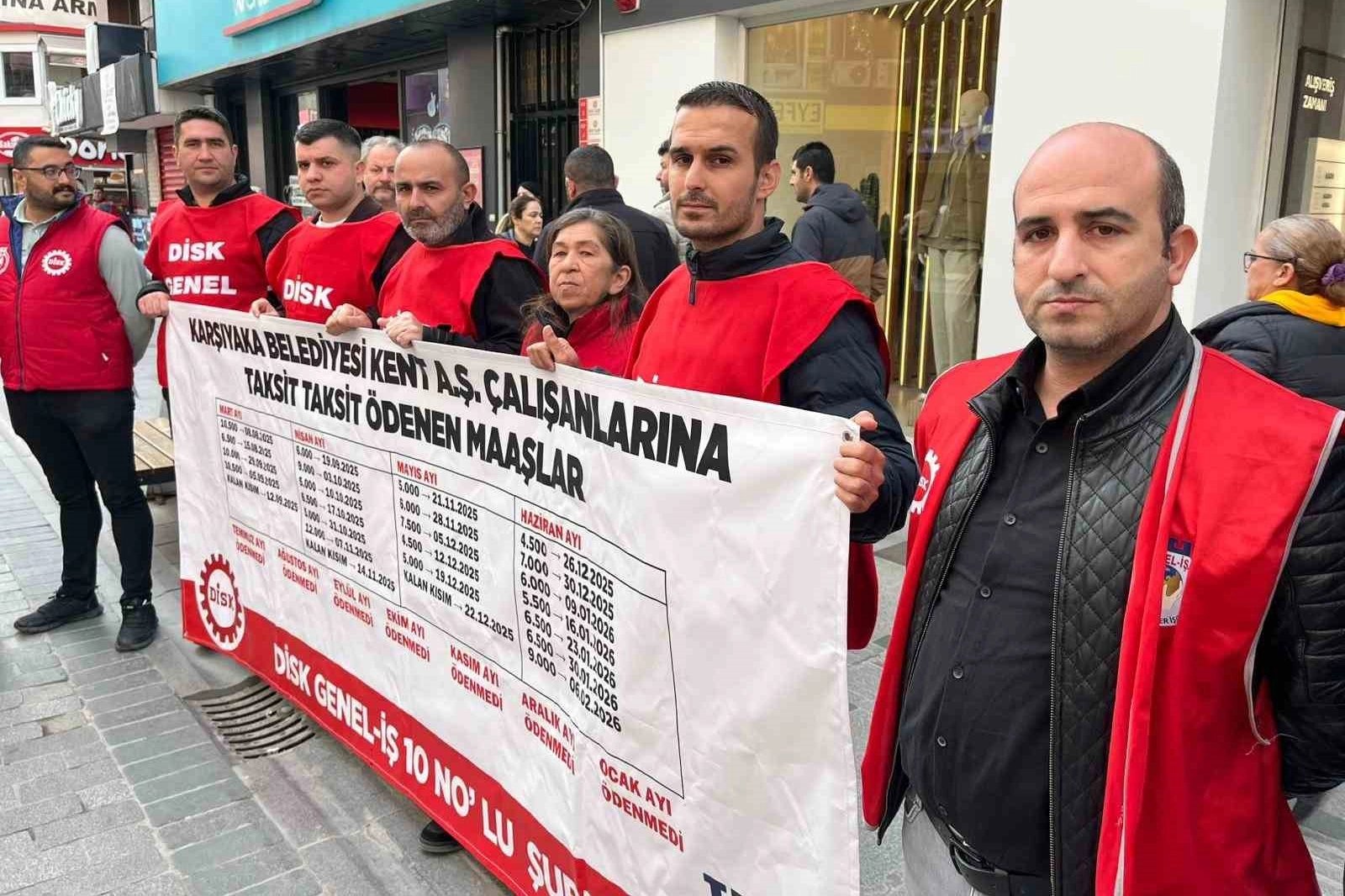 Kent AŞ bünyesinde çalışan işçiler, maaşlarını ya hiç alamadıklarını ya da parça parça ve taksitli şekilde aldıklarını belirterek öğle saatlerinde Karşıyaka Çarşısı’nda bir araya geldi. İşçiler, hazırladıkları bildirileri esnaf ve vatandaşlara dağıtarak yaşadıkları ekonomik sıkıntıyı kamuoyuna duyurmaya çalıştı.