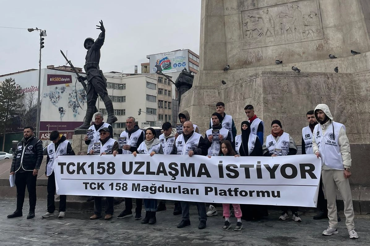 TCK 158 Mağdurları Platformu üyeleri, Ulus Zafer Anıtı önünde toplandı. “TCK 158 uzlaşma istiyor” yazılı pankart açan grup adına açıklamayı Platform Başkanı İlyas Ataş yaptı. Ataş, binlerce vatandaşın banka hesaplarını iyi niyetle ve güvene dayalı ilişkilerle üçüncü kişilere verdiğini, ancak bu durumun ciddi mağduriyetlere yol açtığını söyledi.