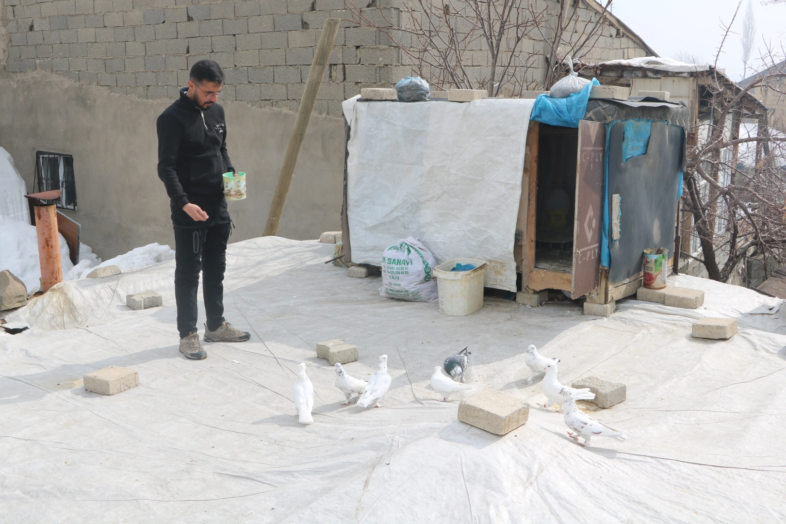 Hakkari’nin Yüksekova ilçesine bağlı Esentepe Mahallesi’nde yaşayan Murat Çağatay (30), evinin damında 3 ayrı ırktan toplam 50 güvercin besliyor. Kuş sevgisi henüz 10 yaşındayken babasının yanında başladı.