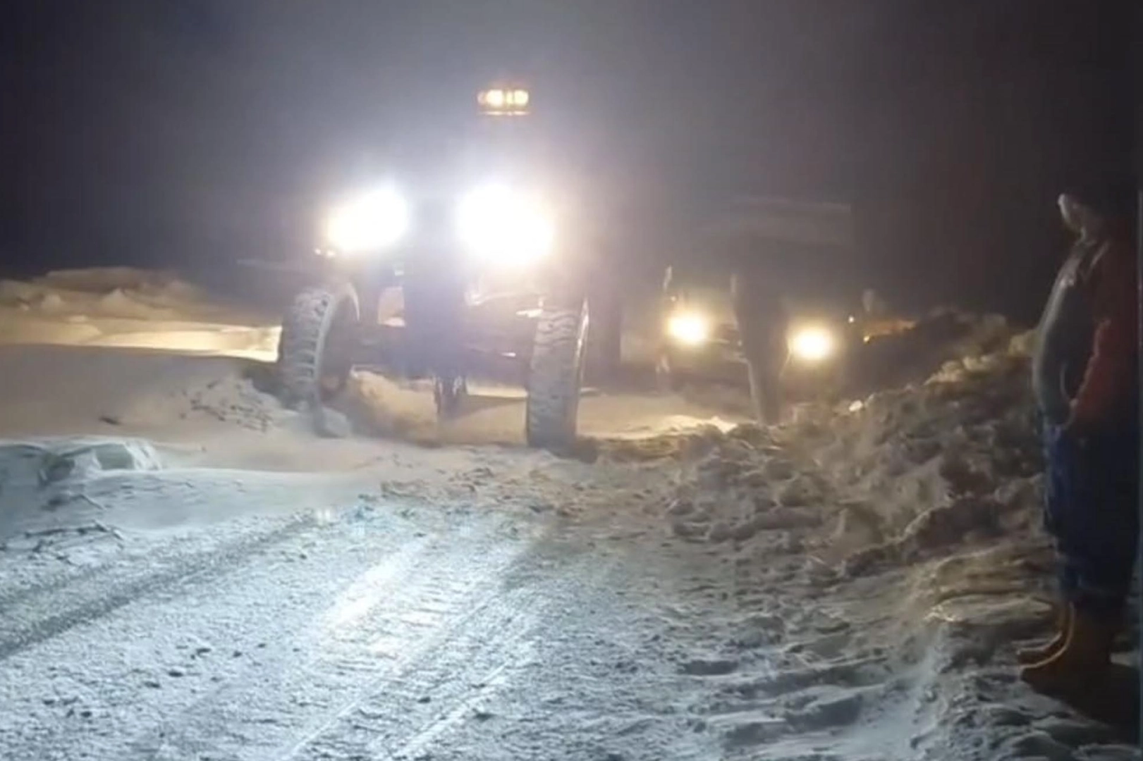 İlerleyemeyen ve donma tehlikesiyle karşı karşıya kalan sürücüler, durumu hemen Kars İl Özel İdaresi’ne bildirdi. İhbarın alınmasıyla birlikte bölgeye sevk edilen karla mücadele ekipleri, tipi nedeniyle kapanan yolları açmak için zamanla yarıştı.