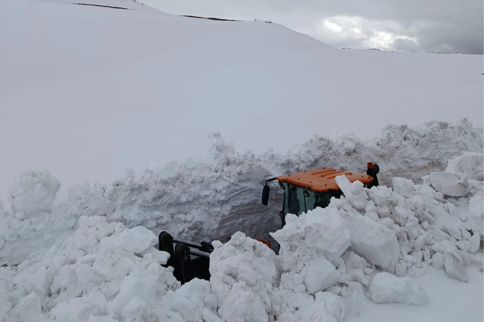Spikor Geçidi’nde oluşan kar kütleleri bazı noktalarda iş makinelerinin boyunu aşarken, ekipler adeta kar tünelleri açarak ilerliyor. Zaman zaman etkisini sürdüren tipi ve sert rüzgar, çalışmaları daha da güçleştiriyor. Buna rağmen ekipler, yolu en kısa sürede ulaşıma açmak için vardiyalı şekilde görev yapıyor.