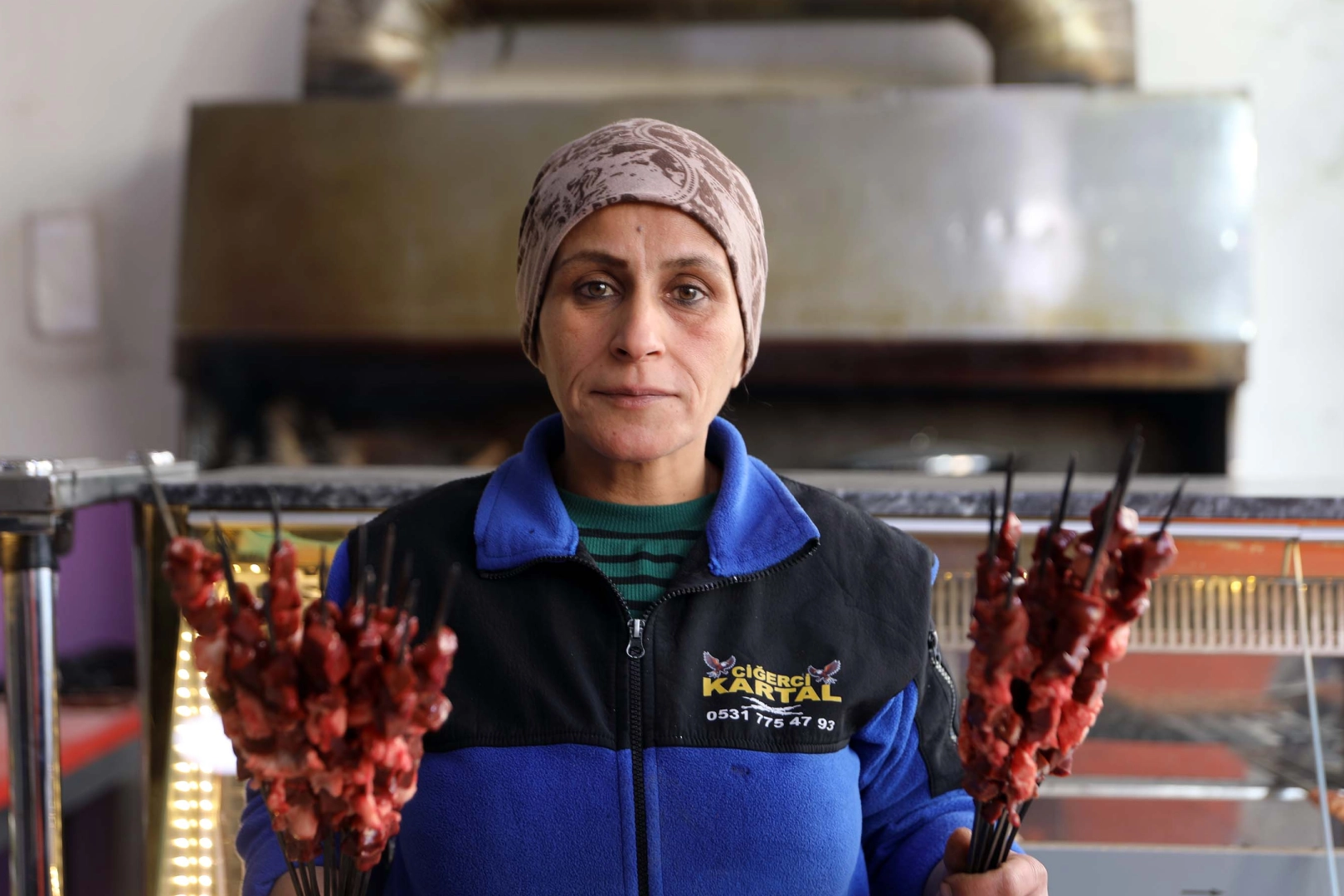 Gaziantep Oğuzeli'nde "kadından kebapçı olmaz" diyenlere inat ocağın başına geçen 4 çocuk annesi Yelda Güler, 10 yıldır bölgenin tek kadın kebap ustası olarak destan yazıyor.