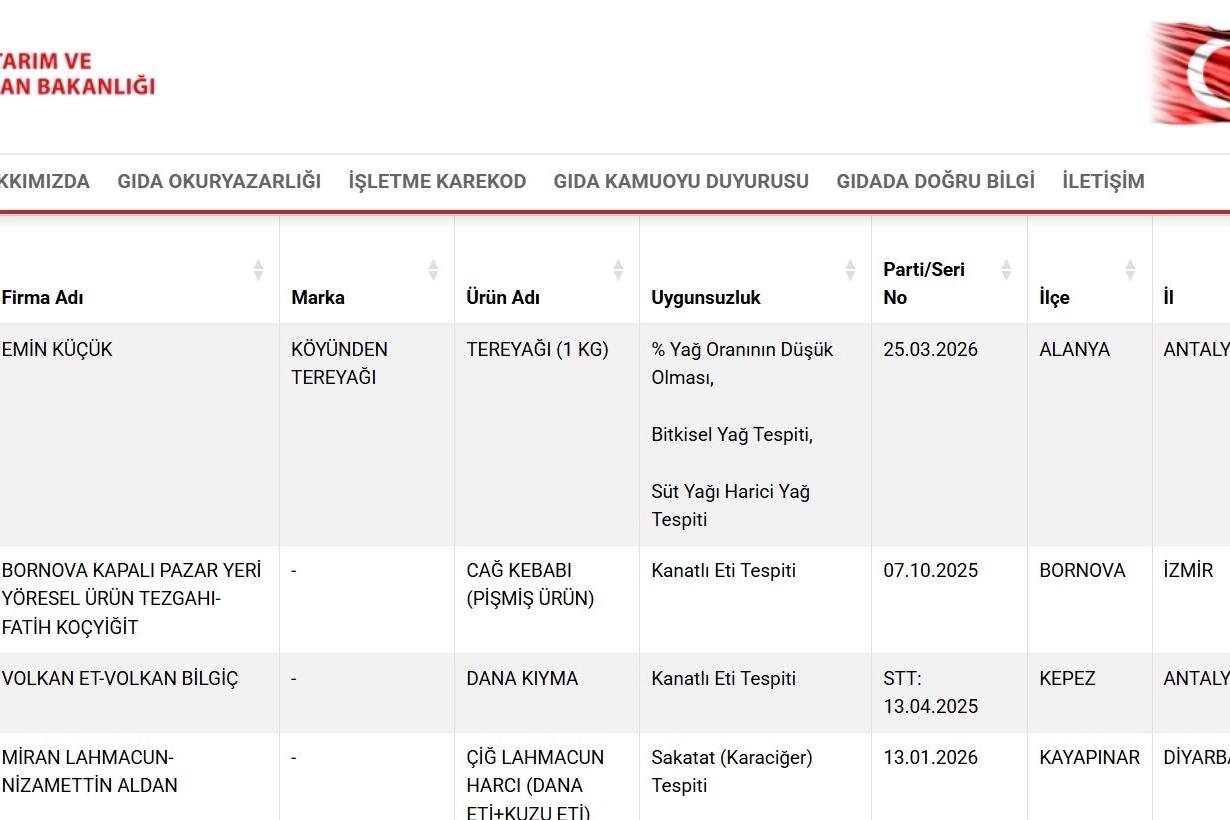 Bakanlık, vatandaşların güvenilir gıdaya ulaşabilmesi için bu listeleri düzenli olarak güncellediğini vurguladı. Tüketiciler, denetim sonuçlarına ve hileli ürün listesine guvenilirgida.tarimorman.gov.tr adresinden ulaşabiliyor.