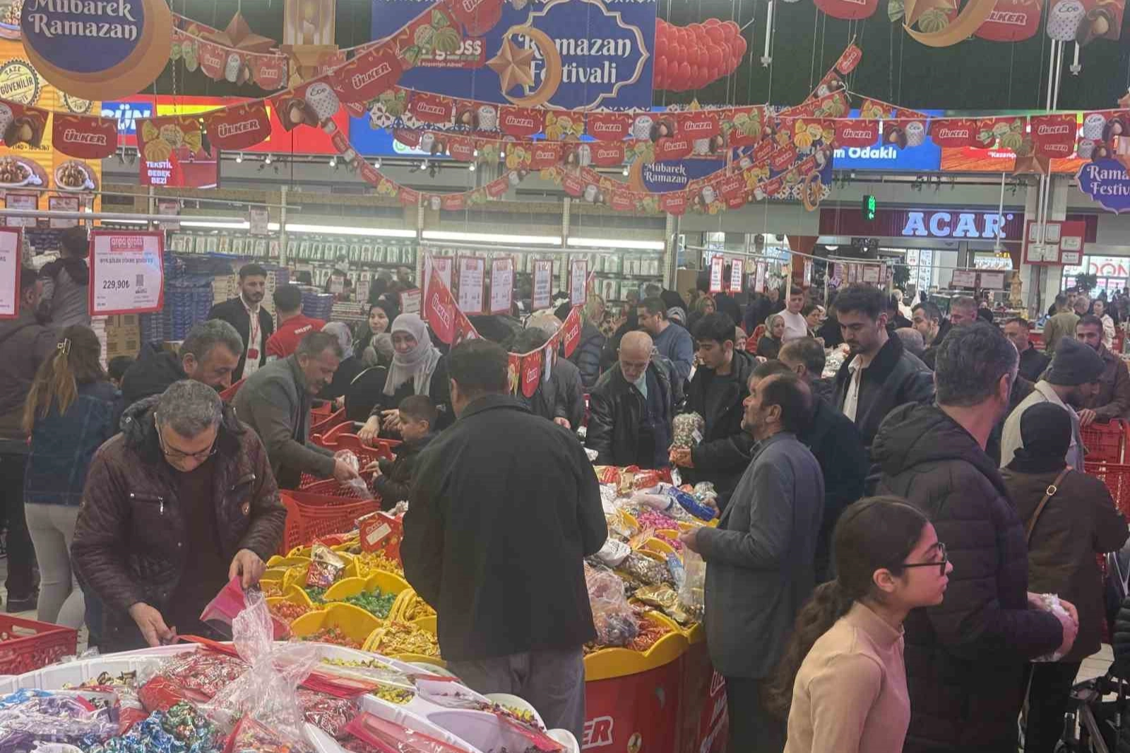Öte yandan, aileleriyle birlikte alışveriş heyecanına ortak olan miniklerin tek odak noktası ise rengarenk bayram şekerleri oldu.