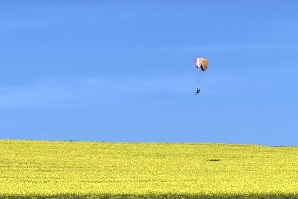 Tekirdağ'da yamaç paraşütü eğitimi veren Kadir Aksoy, kentin sarı renge bürünen kanola tarlalarına dikkat çekmek amacıyla özel bir etkinlik gerçekleştirdi. Gaziköy Mahallesi'nden havalanan Aksoy, paramotor (motorlu yamaç paraşütü) ile yaklaşık yarım saat boyunca bölgedeki kanola ve buğday tarlalarının üzerinde süzüldü.