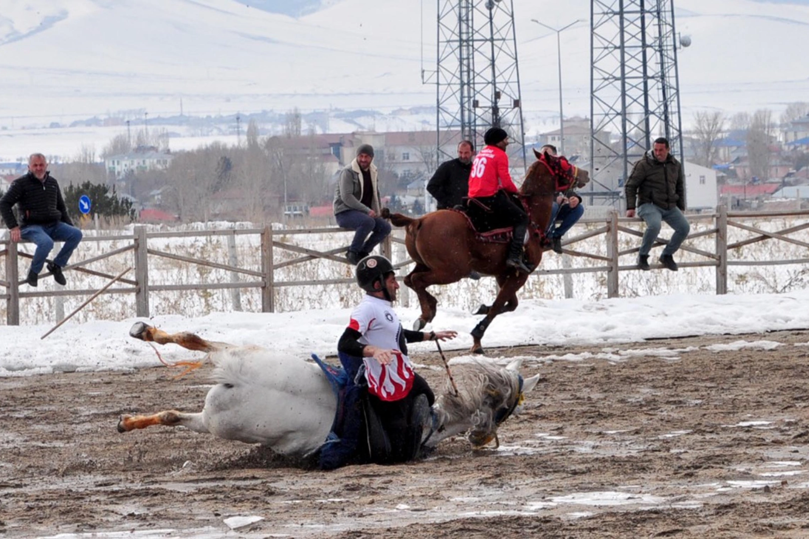 Kafkas Atlı Spor Kulübü’nün de destek verdiği müsabakada ciritçiler, kayganlaşan ve zaman zaman atların dizlerine kadar gömüldüğü ağır zeminde at sürdü. Sporcular, bir yandan rakiplerinden gelen cirit sopalarından korunmaya çalışırken diğer yandan atlarını dengede tutmak için büyük çaba sarf etti. Tribünleri dolduran vatandaşlar, çamura saplanan atların ve çevik sporcuların mücadelesini heyecanla takip etti.