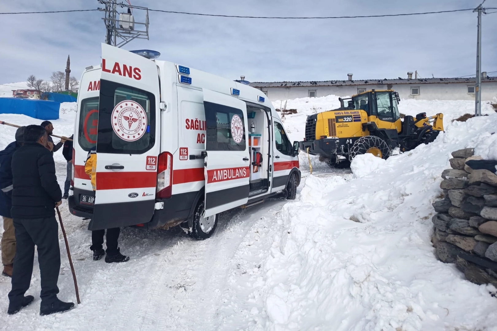 Kars merkeze bağlı Akdere köyünde ikamet eden bir vatandaşın aniden fenalaşması üzerine, paniğe kapılan hasta yakınları durumu hiç vakit kaybetmeden 112 Acil Çağrı Merkezi'ne bildirerek acil yardım talebinde bulundu. Gelen ihbarı hızla değerlendiren sağlık komuta merkezi, hastaya ilk müdahaleyi yapmak ve onu en yakın sağlık kuruluşuna nakletmek üzere tam donanımlı bir ambulansı bölgeye sevk etti. Ancak yoğun kar yağışı ve şiddetli tipi nedeniyle köy yolunun tamamen kapanmış olması, sağlık ekiplerinin ilerleyişini neredeyse imkansız hale getirdi. Görev bilinciyle zorlu hava şartlarına rağmen ilerlemeye çalışan ambulans, köy yolunda metreleri bulan kar kütlelerine saplanarak mahsur kaldı. Kendi imkanlarıyla saplandıkları yerden çıkamayan sağlık personeli, durumu anında merkeze bildirerek kurtarma desteği talebinde bulundu.