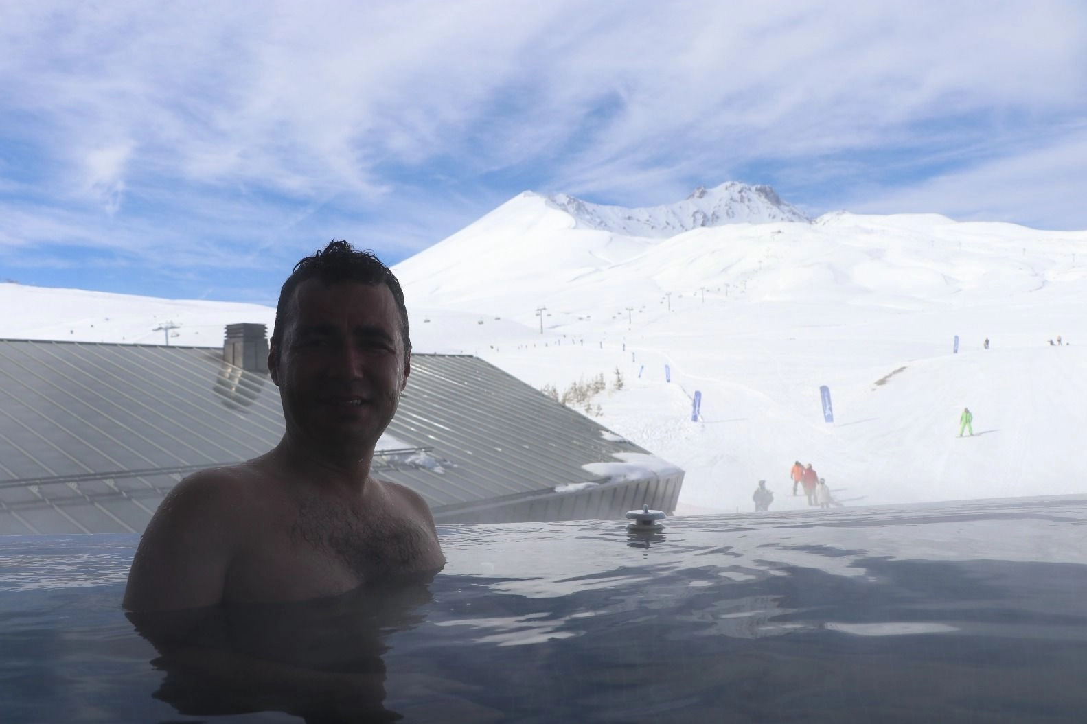 Türkiye'nin Alpleri olarak bilinen ve son yıllarda yapılan yatırımlarla dünya standartlarında bir kış turizmi merkezine dönüşen Erciyes, ziyaretçilerine sadece kayak değil, sıra dışı deneyimler de sunuyor. Sömestir tatiliyle birlikte yerli ve yabancı turistlerin akınına uğrayan merkezde, en çok ilgiyi pistler kadar otellerin "açık hava sıcak havuzları" görüyor.