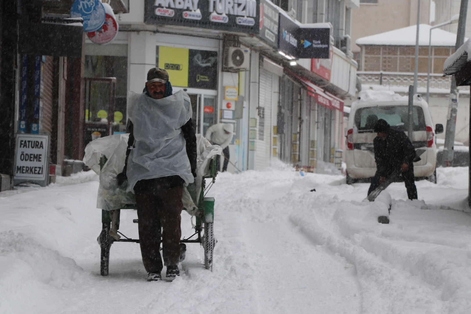 Vanlılar güne karla uyandı, ancak bu kez manzara sadece kartpostallık değil, aynı zamanda zorluydu. Gece boyunca aralıklarla yağan kar, sabah saatlerinde tipinin de etkisiyle hayatı durma noktasına getirdi. Kent merkezinde park halindeki araçlar adeta karın içine gömülerek kayboldu. Vatandaşlar ve esnaf, evlerinin ve dükkanlarının önünü açabilmek için sabahın erken saatlerinde küreklere sarıldı.