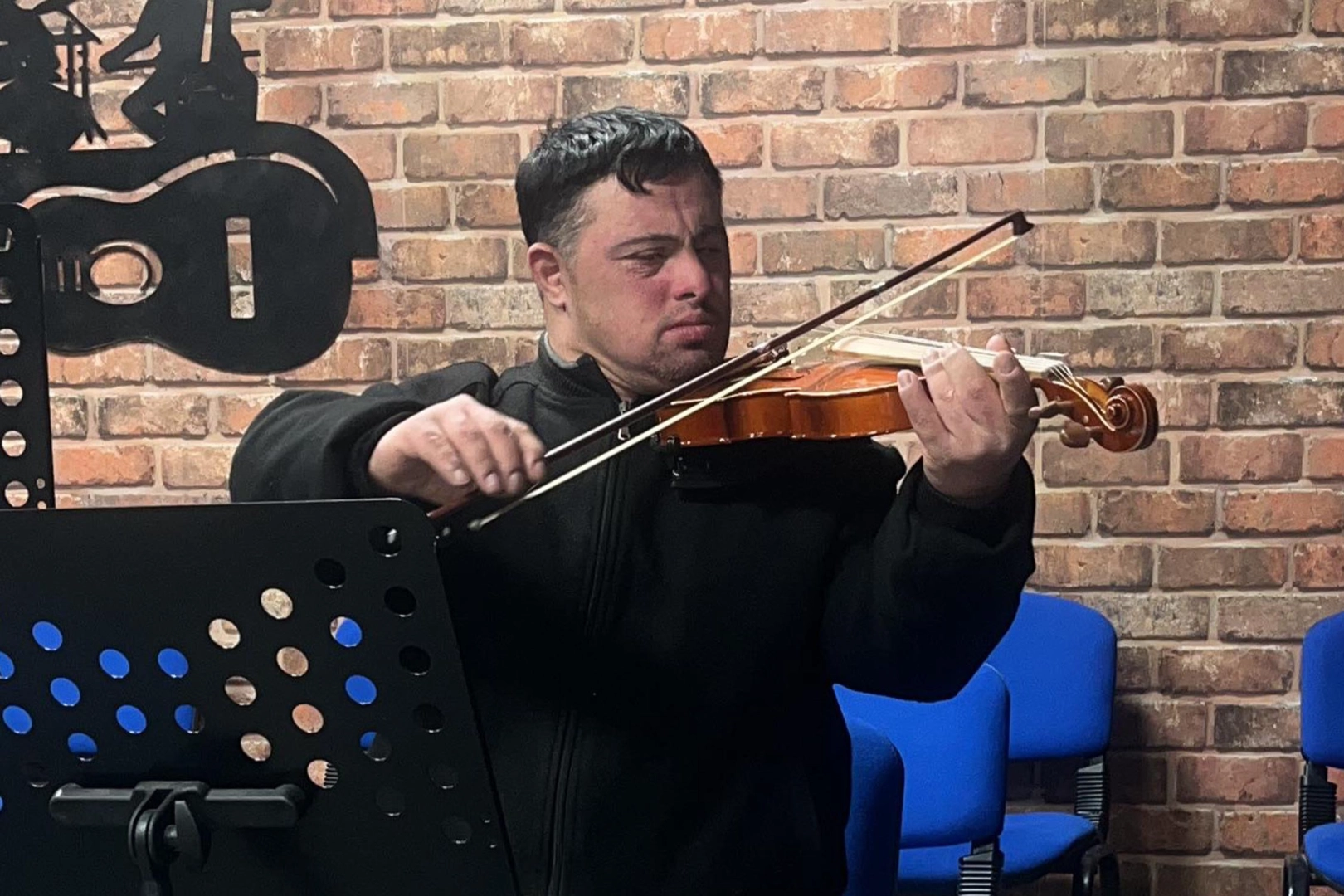 Erzurum Narman'da Down sendromlu 38 yaşındaki Kadir Yavuz, haftanın beş günü katıldığı keman ve bağlama kurslarıyla çevresine neşe saçıyor.
