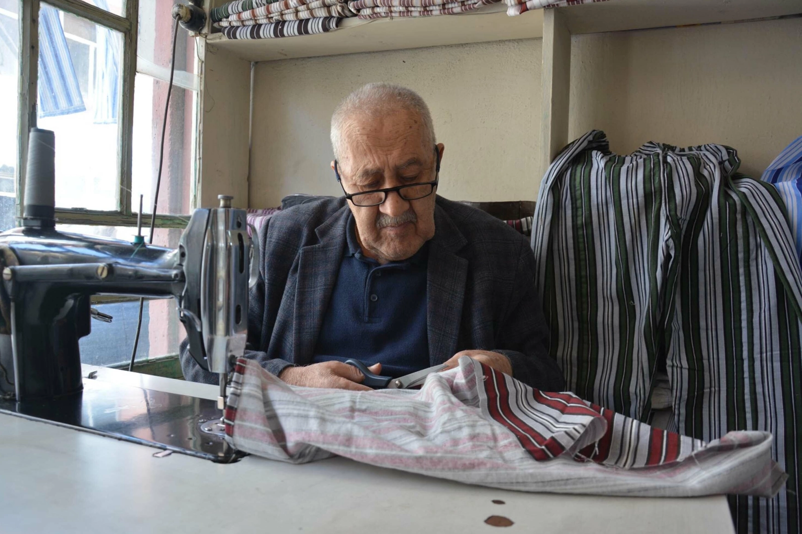 Manisa'da 77 yaşındaki terzi Yaşar Öztemel, Türkiye'nin bir dönemine damga vuran nostaljik çizgili pijama kültürünü yaşatmaya devam ediyor.