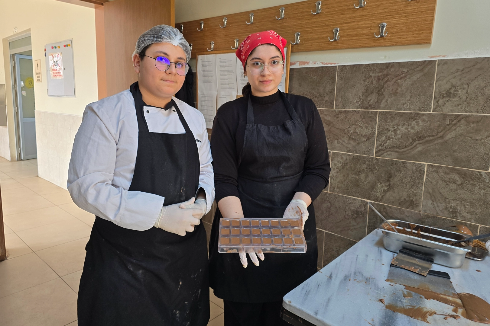 Hatay Samandağ'da meslek lisesi öğrencileri, kurdukları 'Züha' markasıyla çikolata, mantı ve kabak tatlısı üreterek hem öğreniyor hem kazanıyor.